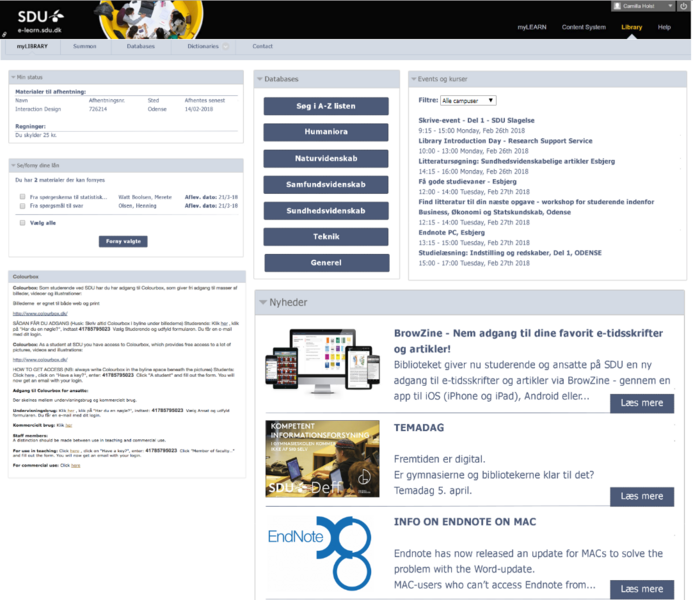 SDUB har sammen med to studerende fra Webkommunikation (cand.it.) arbejdet på at videreudvikle designet og indholdet af SDUBs fane på SDUs e-læringsplatform Blackboard.